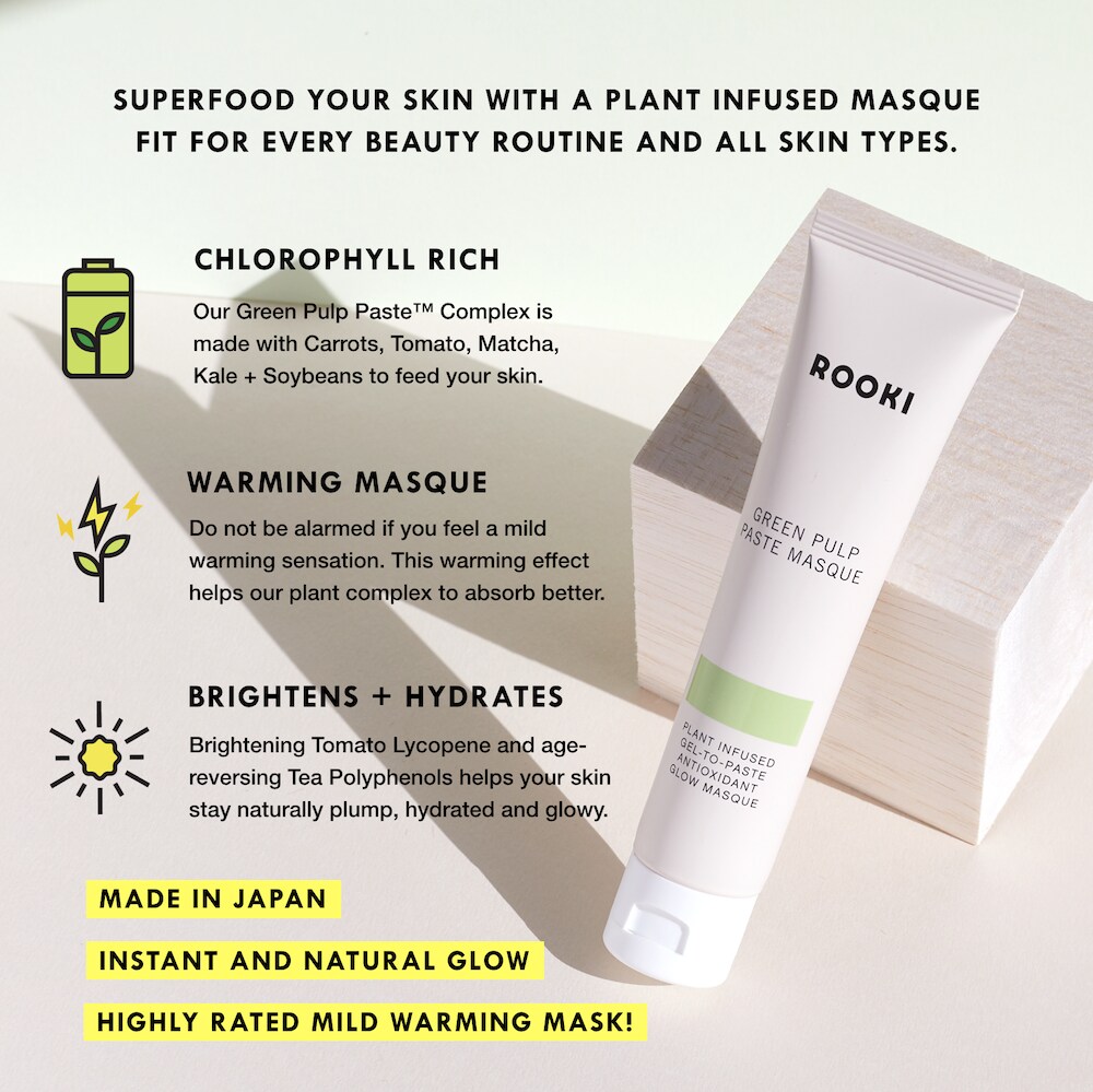 Supercharge your skin with our bestselling 10 minute mask. Made with our signature Green Pulp Paste™, a natural blend of 5 botanical ingredients that is rich in skin-soothing chlorophyll and antioxidants. Use three times a week for instantly glowy, hydrated and youthful skin. For dehydrated skin, a mild warming sensation may be felt.
